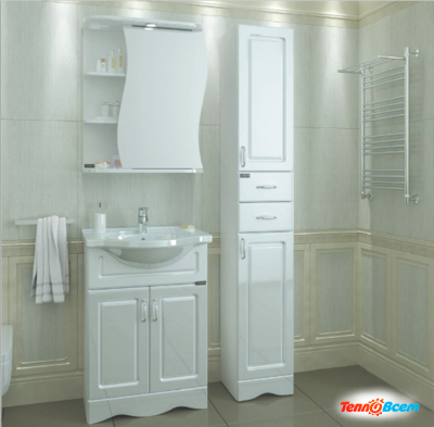 Коллекция "Верона" выполнена в классическом стиле. На фасад мебели нанесён рисунок. Комплект "Верона" цвета белый глянец состоит из тумбы напольной, зеркало, напольного шкафа-колонны. Корпус изделий выполнен из влагостойкого ЛДСП, фасад из МДФ. Фасад мебели покрыты глянцевой ПВХ плёнкой. Тумба укомплектована красивой, классической раковиной из санфаянса с глубокой чашей. Большие двери предоставляют максимальный доступ к подключению коммуникаций. Шкаф-колонна снабжена выдвижным ящиками и двумя распашными фасадами.