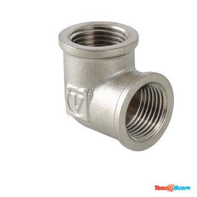 (VTr.090.N) Угловой латунный никелированный фитинг. Резьба – внутренняя/внутренняя, цилиндрическая трубная по ГОСТу 6357 (ISO 228, EN 10226), совместимая также с наружной конической резьбой по ГОСТу 6211 (ISO R7).